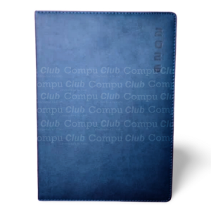 Canto plateado, listón separador, papel blanco 70g., impresión a 2 colores, programador anual, programador mensual, día por página, porta documentos, amplia sección para notas, incluye estuche.