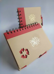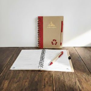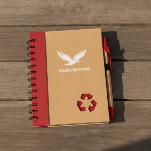 Libretas papel reciclado con bolígrafo cartón reciclado para personalizar tamaño A5. Las libretas personalizadas en Foil con tu logo tienen una imagen de calidad adicional. Este modelo tiene 70 hojas rayadas.